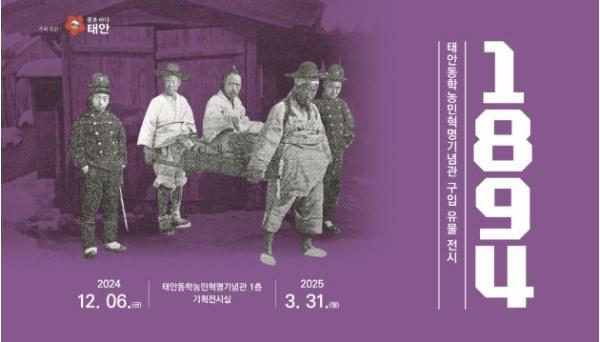 태안군은 12월 6일부터 내년 3월 31일까지 약 4개월간 태안동학농민혁명기념관 기획전시실에서 동학농민혁명의 역사적 의미를 되새기는 ‘1894’ 전시회를 마련한다고 2일 밝혔다.