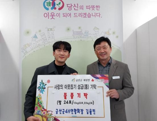 금산군4H연합회(회장 김율민)는 지난 10일 금산군 제원면희망나눔곳간에 온정이 담긴 쌀을 기부하고 이웃사랑 나눔을 실천했다.