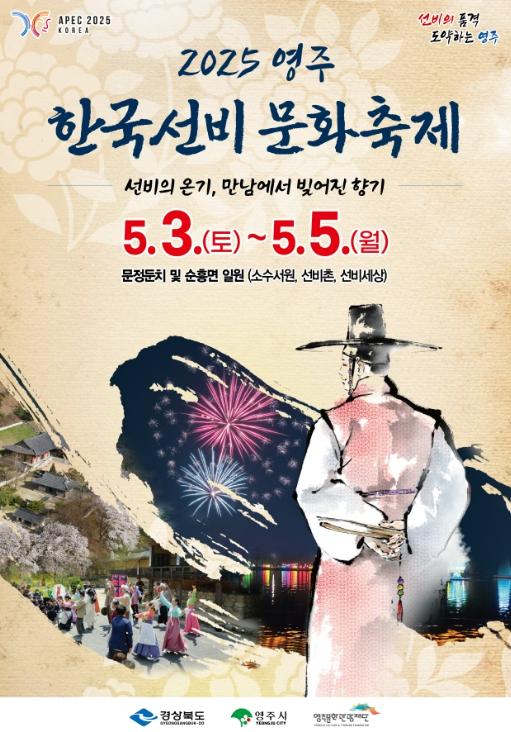 선비 도시로 이름을 알리고 있는 영주시를 대표하는 ‘2025영주 한국선비문화축제’가 5월의 첫 번째 주말인 3일부터 5일까지 3일간 문정둔치(시민운동장 앞) 및 선비촌 일원에서 개최된다.