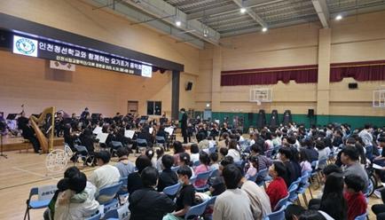 이어 오후 1시 20분, 인천시립교향악단이 유치원부터 중학교까지 교육과정을 운영하는 인천청선학교에서 “요기조기 음악회”라는 타이틀로 무대를 꾸몄다.