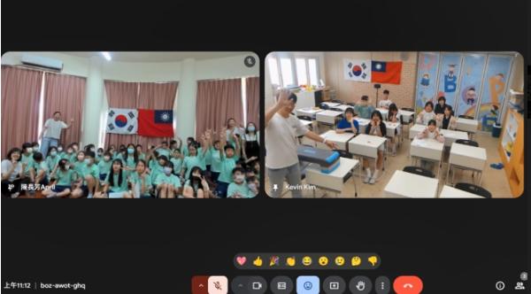 강구초등학교 동아리 반 학생은‘위대한 한글, 그리고 우리 고장’이라는 주제로 대만 먀오리현 왠화초등학교 동아리 반 학생과 공동 수업을 진행하고 있다.