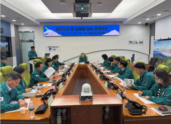이길용 부군수는 “부서별로 관리 시설물과 취약시설 현황을 철저히 파악하고 위험 요인을 사전에 조치할 것”을 당부하고, “위험 징후 포착 시 사전에 주민을 대피시켜 인명피해가 발생하지 않도록 노력해 달라”고 말했다.