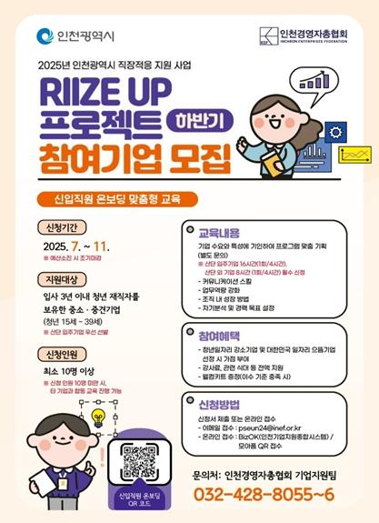 인천광역시는 중소·중견기업에 재직 중인 신입 청년들의 직장 적응과 장기근속을 지원하기 위해 ‘2025년 직장적응 지원사업’ 하반기 교육 참여기업을 오는 7월 24일부터 모집한다고 밝혔다.