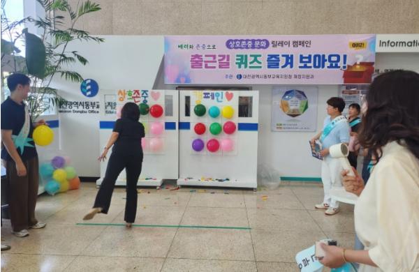 대전동부교육지원청은 7월 24일 재정지원과 주관 아래 전 직원을 대상으로 출근길 ‘상호존중 퀴즈쇼!’를 실시했다.