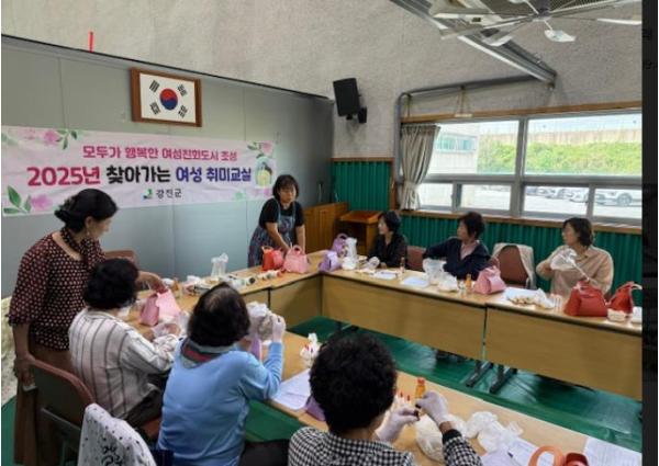 ‘찾아가는 여성 취미교실’은 9월 22일부터 10월 17일까지 강진군 11개 읍·면을 순회하며 운영되고 있으며, 건전한 여가활동을 통한 자기능력 개발과 문화적 역량 강화, 나아가 취업 및 부업으로의 연계 가능성까지 넓히고 있다.
