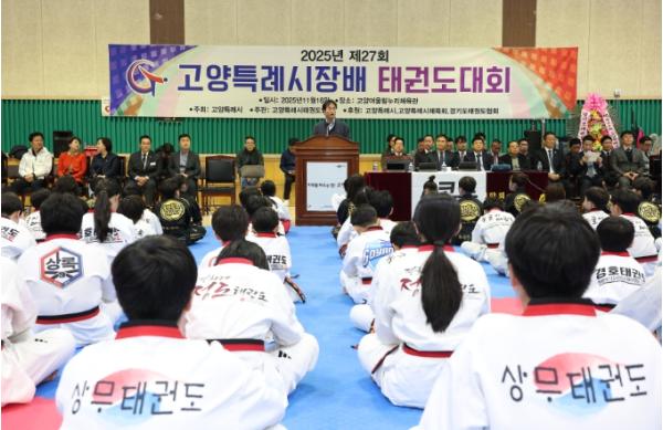2025년 제27회 고양특례시장기 태권도대회가 16일 고양어울림누리 체육관에서 개최됐다. 이동환 고양특례시장은 “갈고닦은 실력과 기량을 유감없이 발휘해 후회 없는 경기를 펼쳐주길”이라고 말했다.