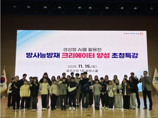 이번 특강은 지역 청소년과 청년의 콘텐츠 제작능력 향상과 주민 눈높이 맞춤형 방사능방재 콘텐츠 제작을 위한 ‘생성형 AI를 활용한 방사능방재 크리에이터 양성’ 교육생을 대상으로 마련됐다. 또 청소년 정책제안 토론회 참가 학생 40여명과 지역주민에게도 수강 기회를 제공했다.