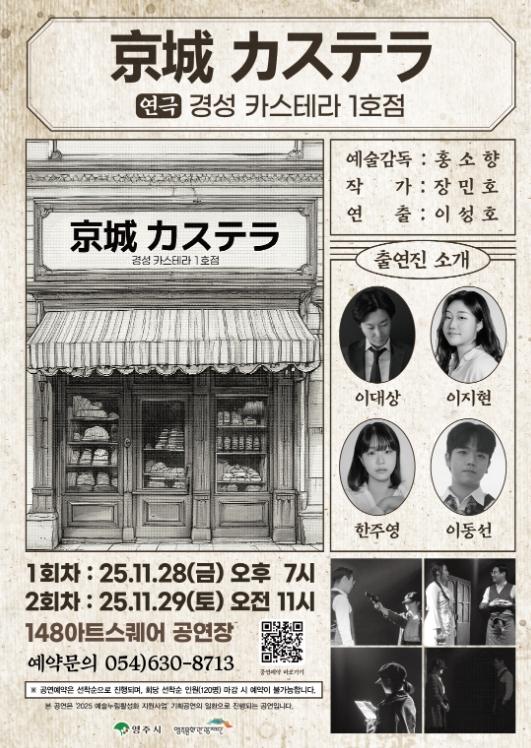 (재)영주문화관광재단은 오는 11월 28일 오후 7시와 11월 29일 오전 11시, 148아트스퀘어 공연장에서 광복 80주년을 기념한 창작연극 '경성 카스테라 1호점'을 선보인다.