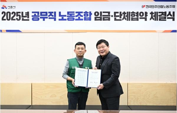 시흥시는 지난 11월 26일 시청 다슬방에서 교섭대표 노동조합인 전국민주연합노동조합 시흥지부와 2025년도 공무직 임금ㆍ단체협약을 체결했다.