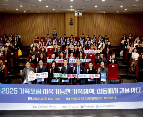 서울 성동구는 지난 11월 18일 한양대학교 정몽구미래자동차연구센터에서 '2025 성동 가족포럼'을 개최해 성동구 가족정책의 성과를 공유하며 지속가능한 미래정책 방향을 논의했다.