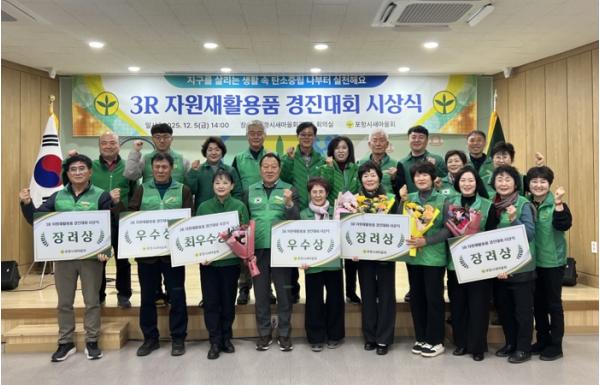 포항시새마을회는 지난 5일 포항시새마을회관에서 ‘2025년 3R 자원 재활용품 수집 경진대회’의 성과를 공유하고 우수 단체를 격려하는 시상식을 개최했다.