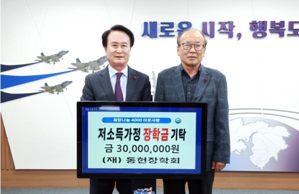 (재)동헌장학회가 지난 12월 5일 사천시 관내 저소득가정의 중·고·대학생 30명을 위해 총 3,000만 원의 장학금을 기탁했다.