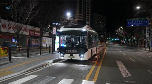 부산시는 오늘(26일)부터 내성교차로와 중동을 잇는 간선급행버스(BRT) 구간에서 자율주행버스 '심야 여객운송 서비스'를 시작한다고 밝혔다.