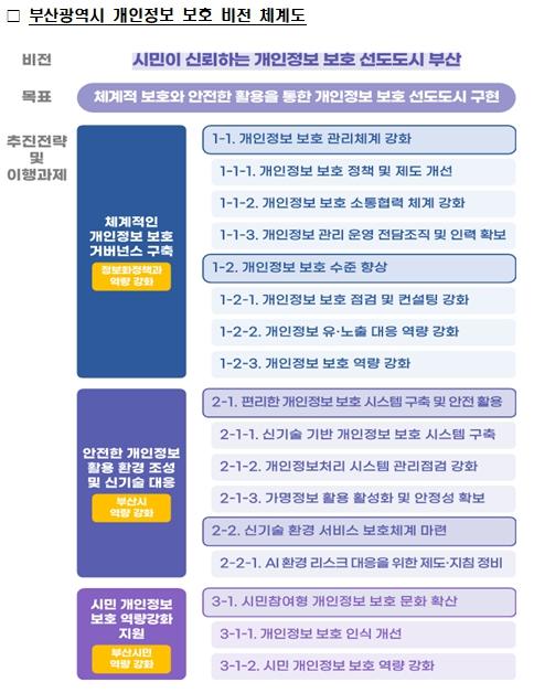시는 '시민이 신뢰하는 개인정보 보호 선도도시 부산'을 비전으로 개인정보 보호 정책의 3대 추진 전략을 제시하고 실효성 있는 과제를 추진할 계획이다.