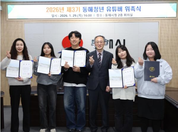 동해시는 29일 시청에서 청년유튜버 위촉식을 열고, 선발된 청년유튜버 5명에게 위촉장을 수여했다.