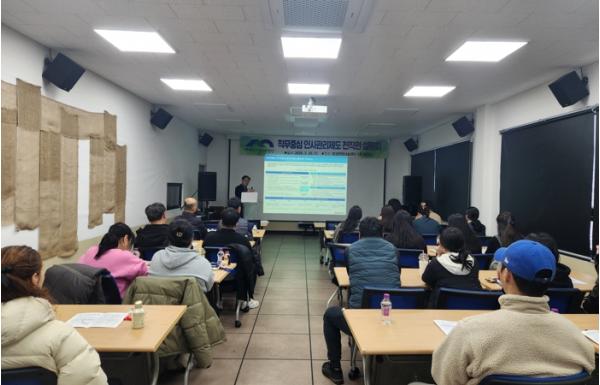 설명회에서는 ▲직무중심 인사관리 도입 배경 및 추진 방향 ▲직무분석 절차와 직무기술서(안) 주요 내용 ▲향후 제도 운영 일정 ▲직원 질의응답 등이 진행됐다. 특히 현장의 다양한 의견을 수렴하는 시간을 마련해 제도의 실효성과 현장 적용성을 높이는 데 중점을 두었다.