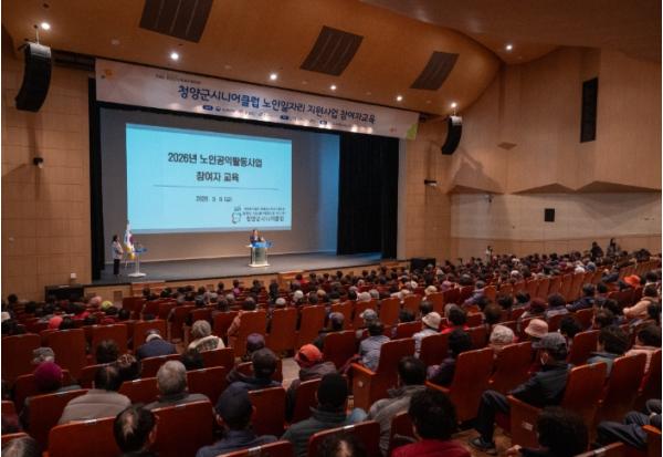 청양군시니어클럽이 어르신들의 안전한 사회활동 참여와 건강한 노후 생활을 지원하기 위해 청양문화예술회관 대공연장에서 ‘2026년 노인공익활동 지원사업 참여자 교육’을 실시했다고 9일 밝혔다.