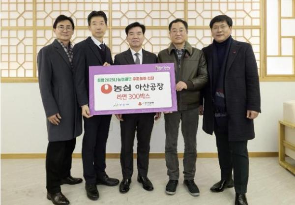 아산시는 지난 23일 ㈜농심 아산공장(공장장 이병일)으로부터 '희망2025나눔캠페인' 라면 300박스를 후원받았다.