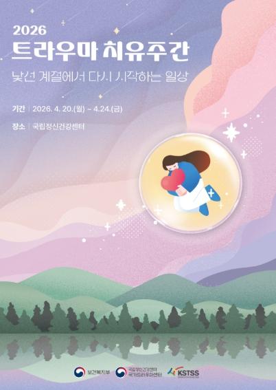 국립정신건강센터(센터장 직무대리 남윤영)는 4월 20일부터 4월 24일까지 '2026 트라우마 치유주간' 행사를 개최한다.