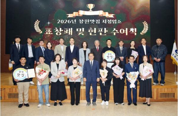 창원특례시는 4월 28일 창원맛집 지정을 10년 동안 유지한 업소 7개소에 대해 표창패와 특별 기념 현판을 수여하고, 2026년 신규 지정된 맛집 7개소에 지정서와 현판을 수여했다고 밝혔다.