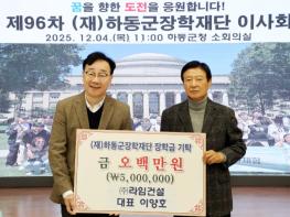 (재)하동군장학재단 이양호 이사장이 지난 4일 열린 제96차 하동군장학재단 이사회에 앞서 지역 인재 육성을 위한 장학기금 500만 원을 출연하며, 22년째 후학 사랑을 실천하고 있다. 이양호 이사장은 2010