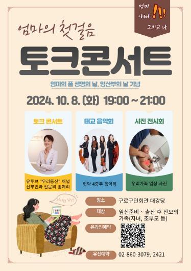구로구가 임산부의 날을 맞아 오는 10월 8일과 10일 이틀간 토크콘서트, 출산 준비 교실 등 다양한 프로그램과 콘텐츠를 선보인다.