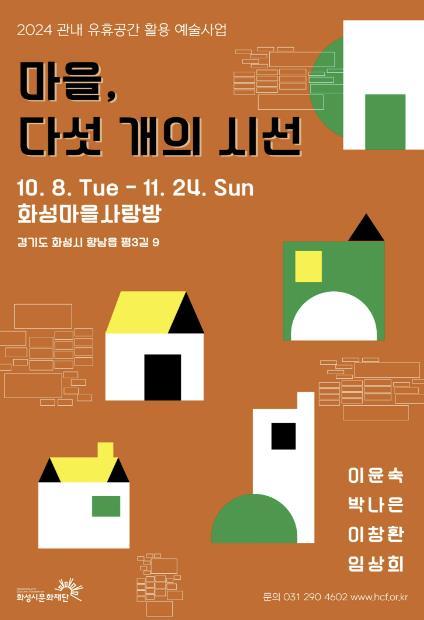 (재)화성시문화재단은 화성 마을 사랑방(경기도 화성시 향남읍 평3길 9)에서 관내 유휴공간을 활용한 예술사업 '마을, 다섯 개의 시선'을 10월 8일부터 11월 24일까지 개최한다.