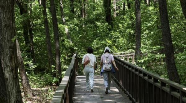 부천자연생태공원 내 무릉도원수목원을 둘러싸고 있는 ‘누구나숲길’은 이름처럼 누구나 편하게 자연을 누릴 권리가 있다는 데서 출발한 장애물 없는 산책로다. 계단·턱 등의 장애물이 없는 나무 데크길로 이뤄져 휠체어나 유모차를 이용하는 시민들도 쉽고 안전하게 이용할 수 있다.