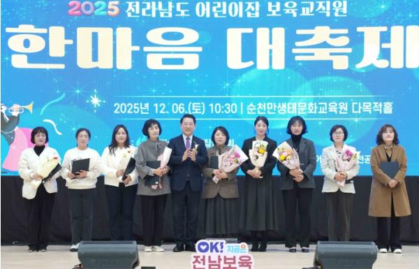 전남도지사는 “아이들이 밝고 건강하게 성장하고, 지역의 미래를 이끌 단단한 공동체가 되도록 만드는 주역이 보육교사”라며 “앞으로도 더 나은 보육환경을, 더 존중받는 보육문화를 만들기 위해 최선을 다하겠다”고 말했다.