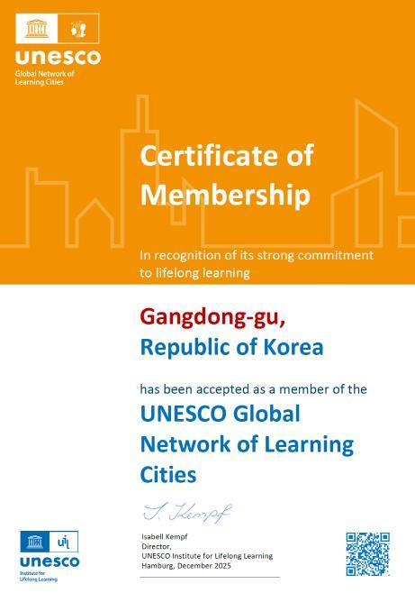 서울 강동구는 지난 5일, 유네스코 글로벌 학습도시(GNLC: Global Network of Learning Cities)로 최종 선정되며 우수한 평생교육 인프라와 정책을 국제적으로 인정받았다고 밝혔다.