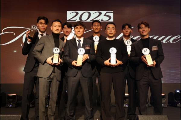 10일 오후 2시, 서울 메이필드호텔에서 열린‘2025 K3·K4리그 어워즈’에서 김해FC2008 선수단이 최우수 지도자와 베스트일레븐, 영 플레이어 부문에서 8명의 수상자를 배출하며 축구 전통 강호의 저력을 증명했다.