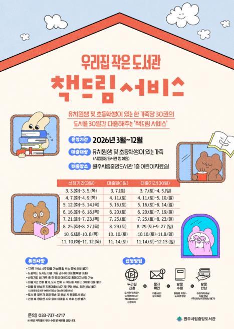 원주시립중앙도서관은 3월부터 우리집 작은도서관 ‘책드림 서비스’를 운영한다.