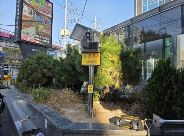 금연벨은 담배 연기로 불편을 겪는 구민이 현장에 설치된 버튼을 누르면, 약 5초 후 금연 안내 방송을 송출하는 스마트 장치다. 이 장치는 태양광 에너지를 전력으로 사용해 친환경적으로 운영되며, 현재 △지하철역 10미터 이내 등 금연구역 13개소 △구청 앞 광장 등 비금연구역 3개소 등 총 16대가 설치되어 가동 중이다.