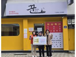 꾼2013 이정아 대표는 “어려운 이웃들에게 따뜻한 식사가 전달되길 바라는 마음으로 김치찜과 반찬을 지원하게 됐다. 앞으로도 지역사회와 함께하는 나눔을 이어가겠다.”라고 밝혔다.