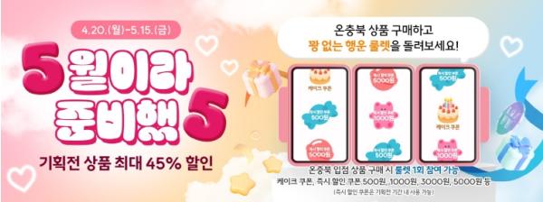 충청북도가 가정의 달을 맞아 지역 농특산물 소비 촉진과 도민 체감 혜택 강화를 위해 ‘온충북, 가정의 달 맞이 기획전’을 오는 4월 20일부터 5월 15일까지 운영한다.