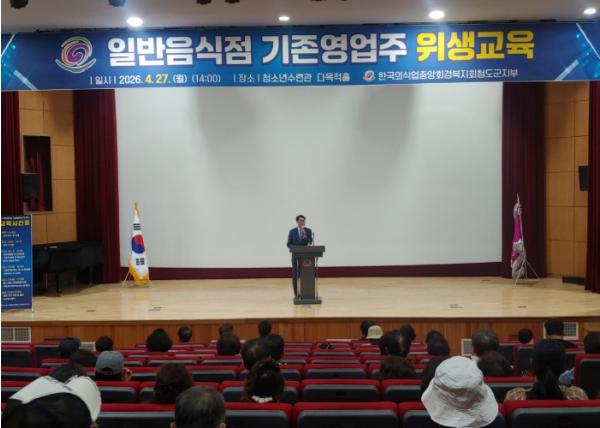 청도군은 27일 청소년수련관 다목적홀에서 2026년도 일반음식점 기존 영업주 위생교육을 실시했다.